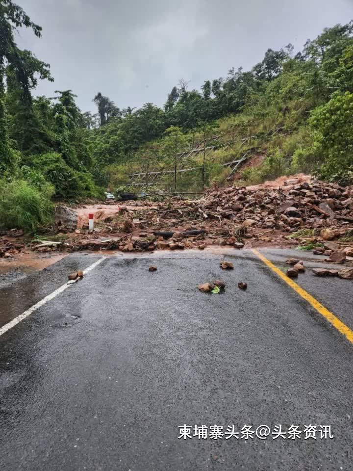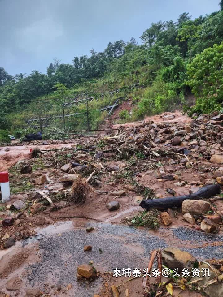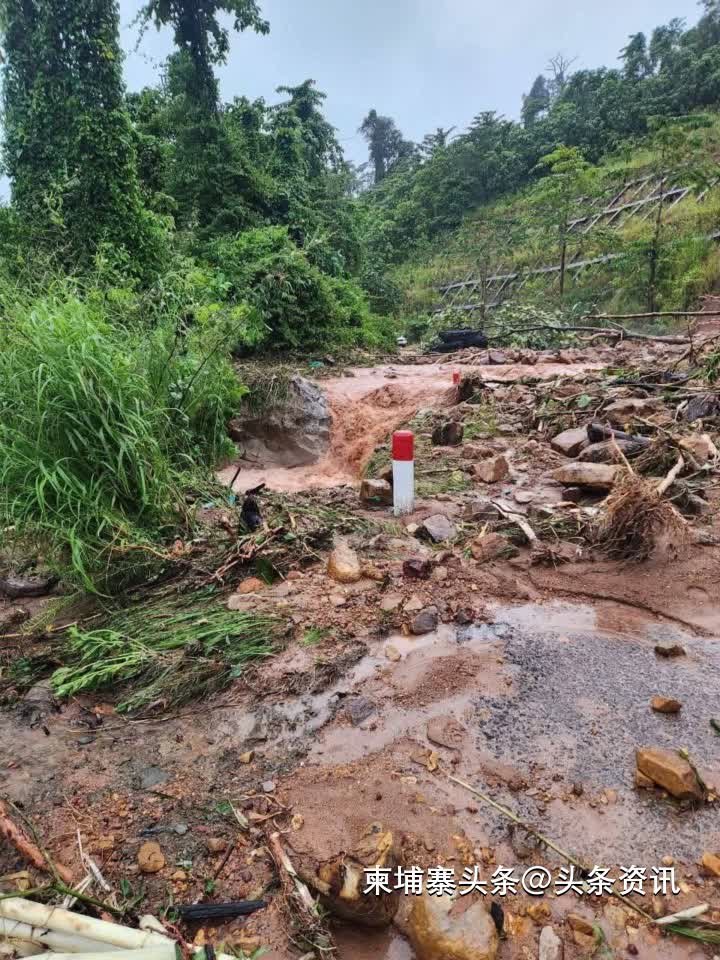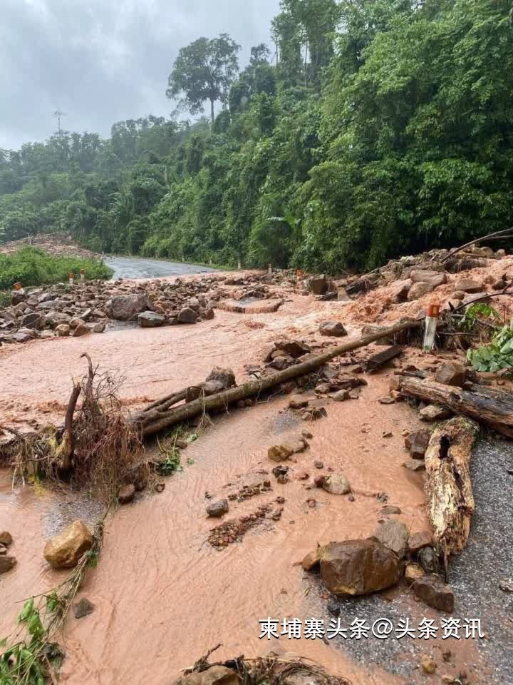 【柬埔寨头条综合报道】据柬媒9月29日报道,受大雨影响,菩萨省55号公路1500山段突发泥石流,导致道路被严重冲毁,所有车辆暂时无法通行。