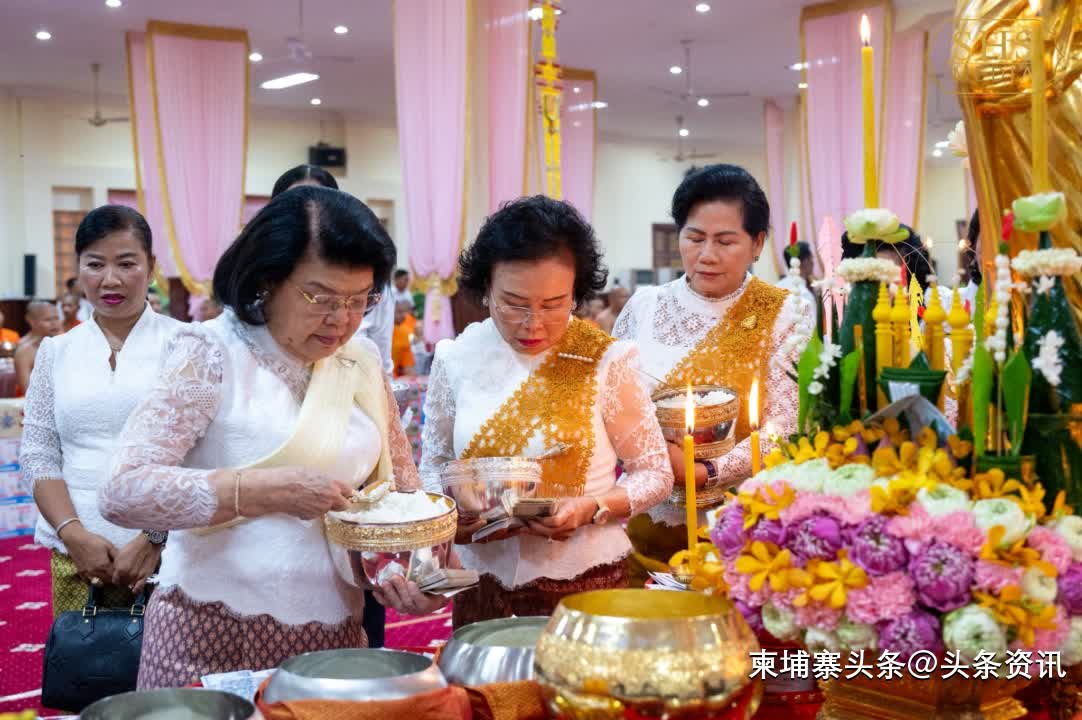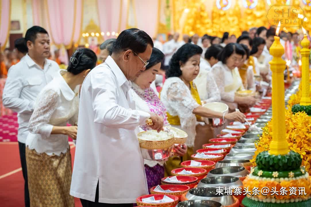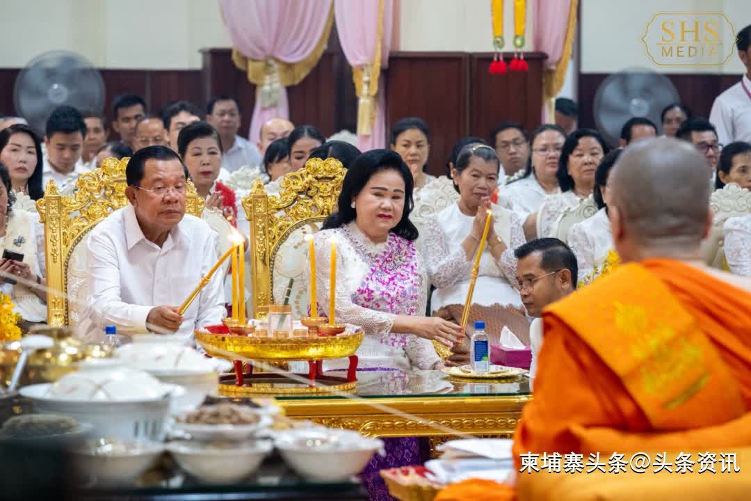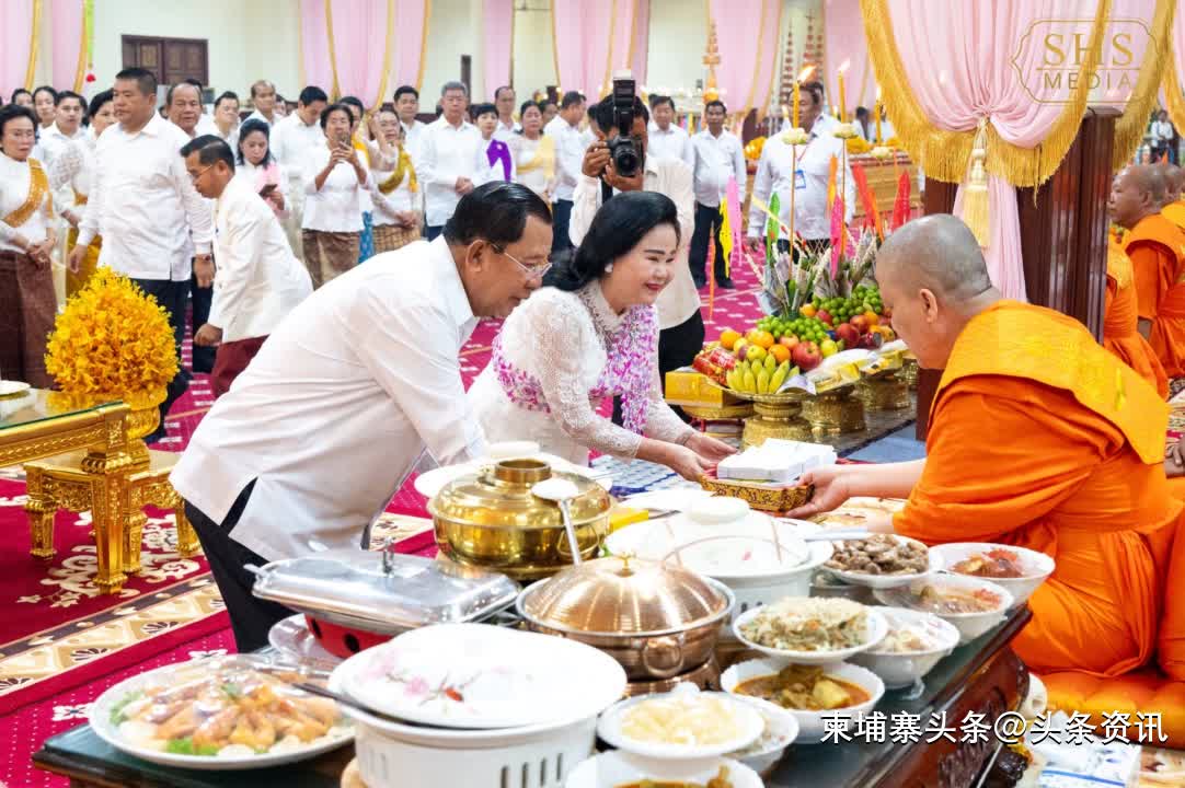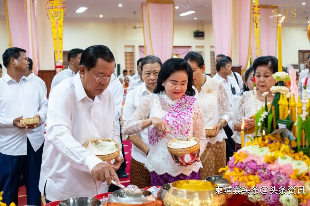 【柬埔寨头条综合报道】据柬媒消息,2025年9月22日上午,柬埔寨参议院主席洪森亲王和夫人文拉妮,偕同家人、亲属、公务员和信众,前往金边市铁桥头区的莫尼沙万寺布施礼佛,以纪念已故的祖先和亲人。