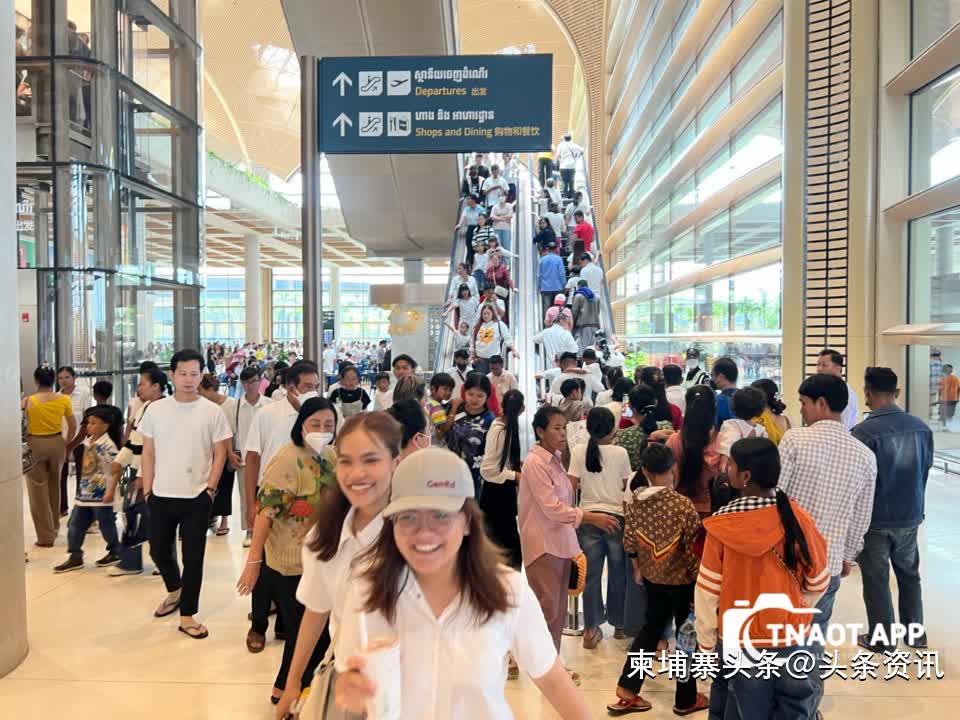【柬埔寨头条综合报道】据柬媒消息,2025年9月14日上午,干拉省省长郭宗仁在其社交媒体发布消息称,德崇国际机场自启用以来吸引大量民众前往参观,现场人潮汹涌,导致停车场饱和、周边道路堵塞。