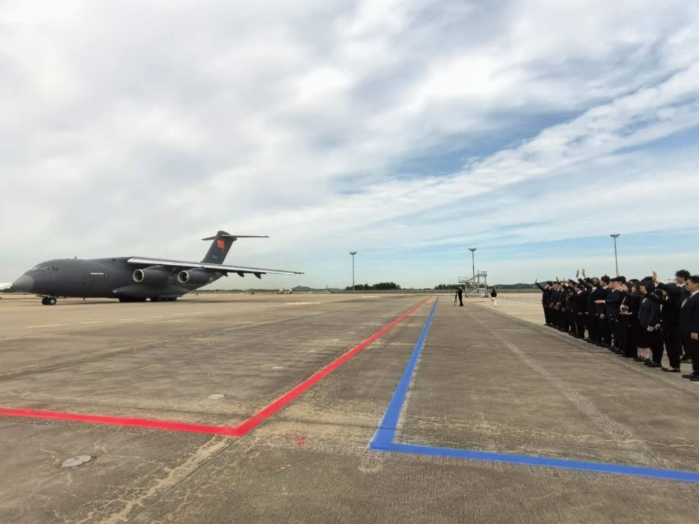 中新网9月12日电 据中国驻韩国大使馆消息,9月12日上午,中韩双方在韩国仁川国际机场共同举行第十二批在韩中国人民志愿军烈士遗骸移交。退役军人事务部副部长马飞雄及代表团成员,中国驻韩国大使戴兵及使馆外交官,中资机构、华人华侨、留学生代表参加。活动开始后,全体中方人员奏唱国歌,戴兵大使为志愿军烈士遗骸棺椁一一覆盖国旗,全体参加人员向烈士遗骸行三鞠躬礼,表达深切哀思和崇高敬意。之后,中国人民解放军仪仗司礼大队礼兵护送英烈遗骸棺椁登上空军“运-20”专机启程回国。