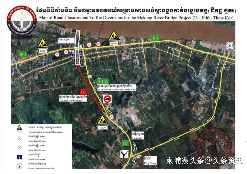 【柬埔寨头条综合报道】据柬媒消息,柬埔寨公共工程与运输部9月1日发布通告称,因湄公河大桥(袋恩—特莫谷)建设需要,习近平大道部分路段将自今年9月1日早上7时起暂时封闭,直至2028年2月1日。