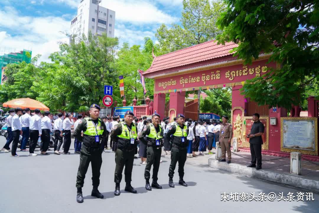 【柬埔寨头条综合报道】据柬媒消息,2025年8月28日,全国高考正式开考。金边市王家宪兵部队联合相关执法部门在首都各考点承担安保任务,全力保障考试期间的安全、秩序与顺利进行。