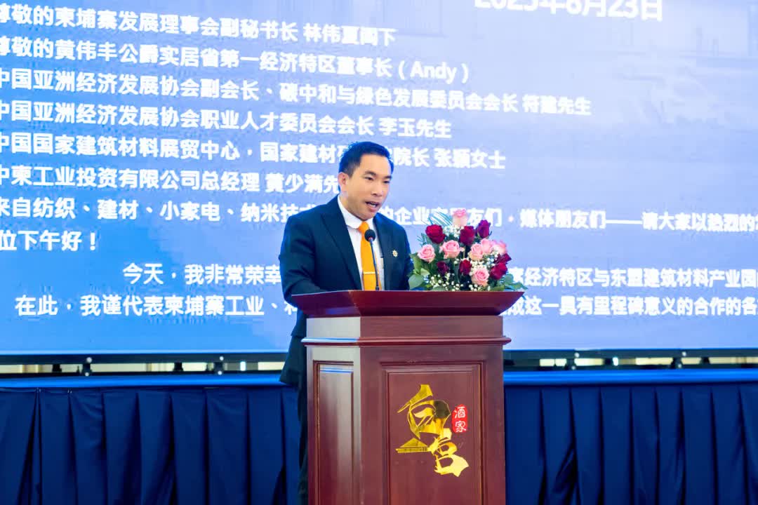 2025 年 8 月 23 日,备受瞩目的 “柬埔寨实居省第一经济特区东盟建材产业园首批入驻企业签约仪式” 在柬埔寨金边隆重举行。11 家中资企业代表齐聚现场,正式签署入驻合作谅解备忘录,标志着该产业园在构建区域建材产业生态、深化中柬产业合作方面迈出关键一步。