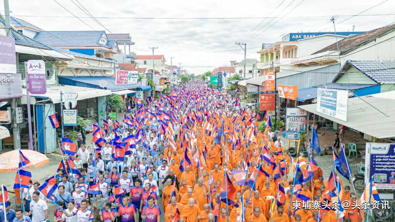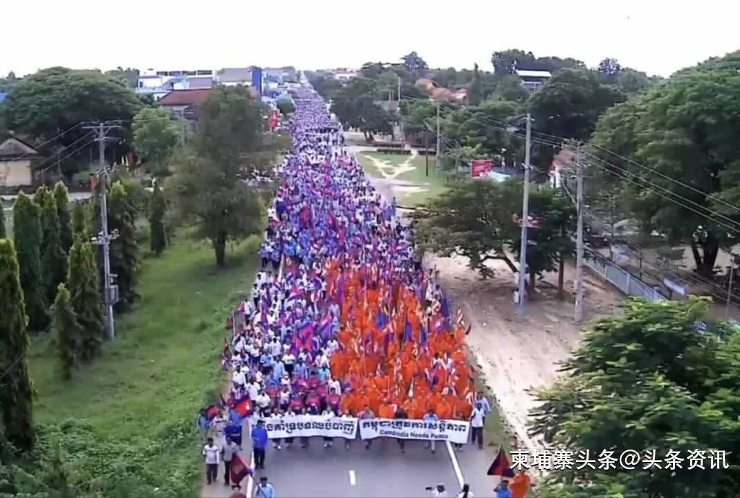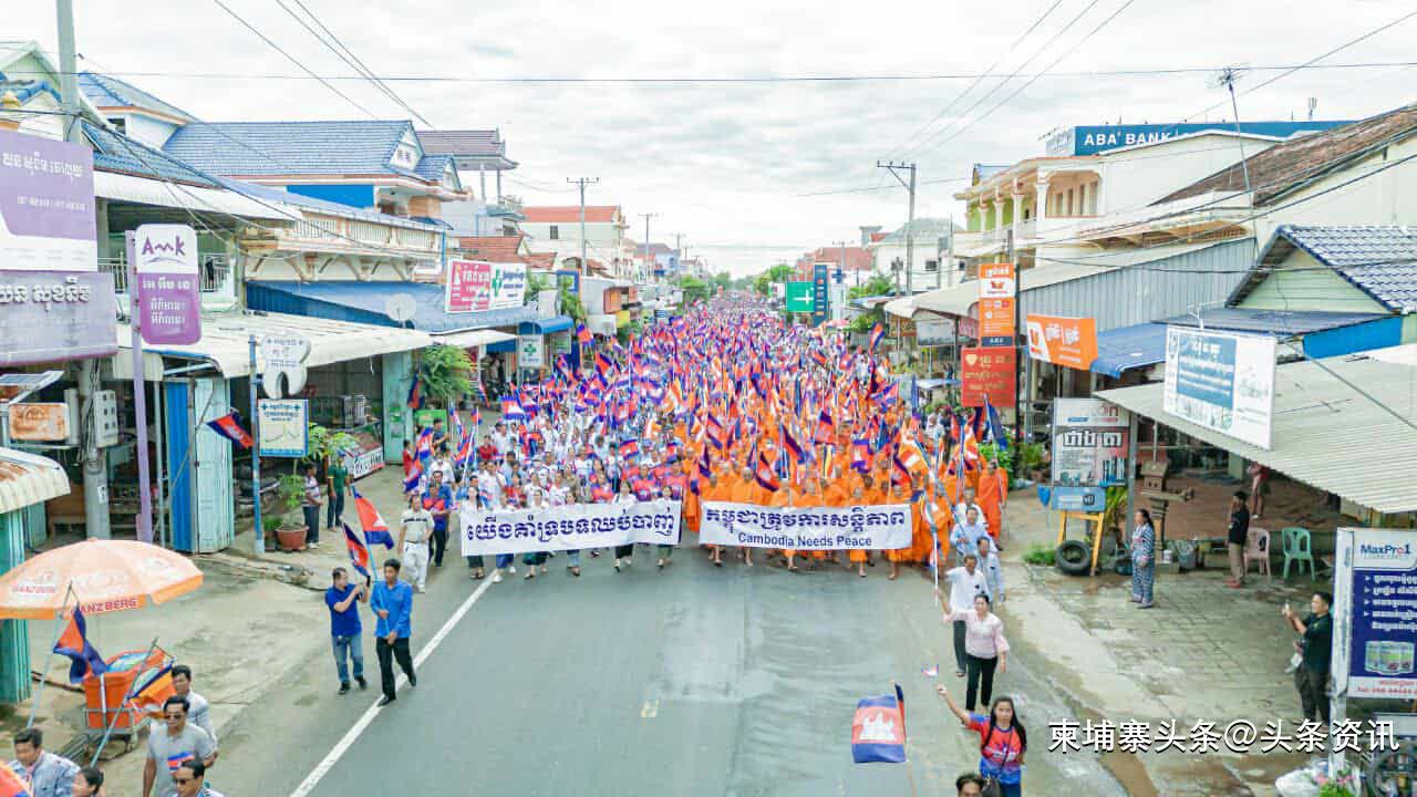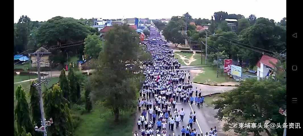 【柬埔寨头条综合报道】据柬媒消息,2025年8月17日上午,柬埔寨波罗勉省省长孙速玛率领和平游行。游行队伍由僧侣、政府官员、教师、学生、青年及民众组成,参与人数约近一万名,旨在表达对柬埔寨与泰国军队停火协议的支持,并传递“感谢和平,柬埔寨需要和平”的共同心声。
