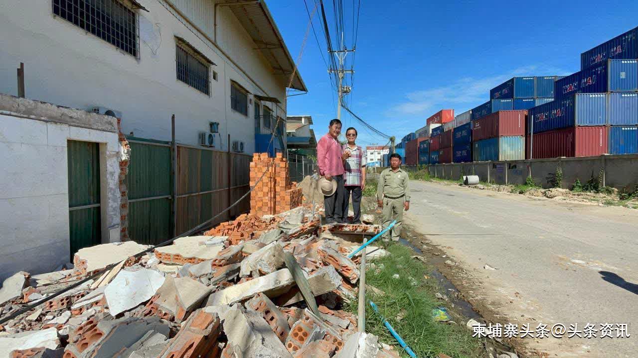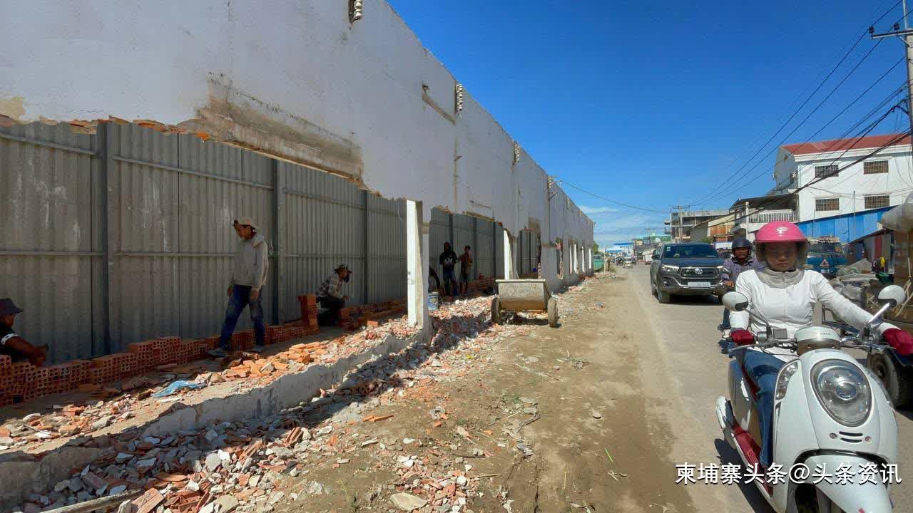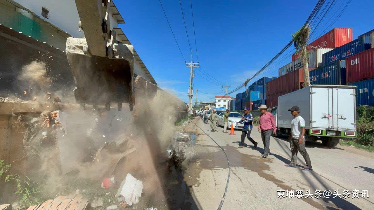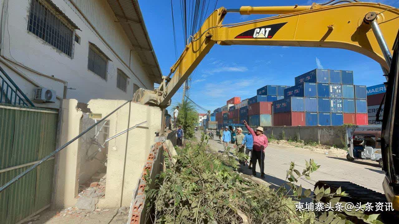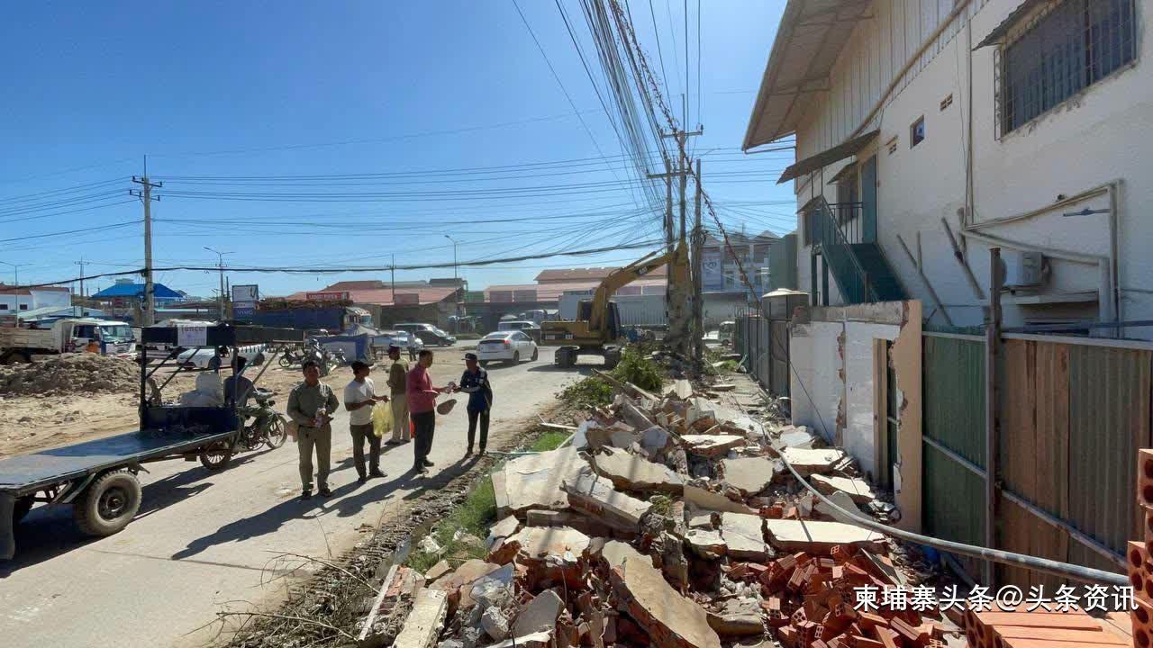 【柬埔寨头条综合报道】据柬媒消息,2025年8月12日上午,金边市波森芷区副区长邦利达率区行政工作组对德邦戈桑分区双赢大道至铁路路段的3处侵占公共道路的工厂围墙实施拆除。