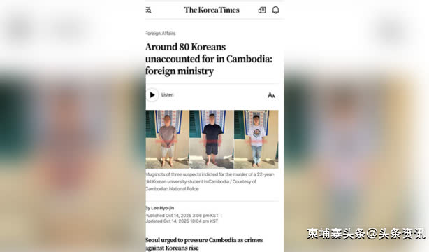 针对韩国媒体援引韩国外交部”截至8月约有80名在柬韩国公民处于失联状态”的报道,通告回应称柬埔寨当局持续开展对相关人员的搜寻与调查工作。(编译:Thomas)