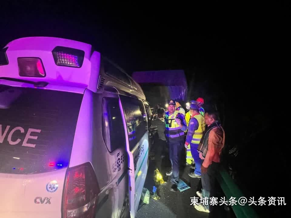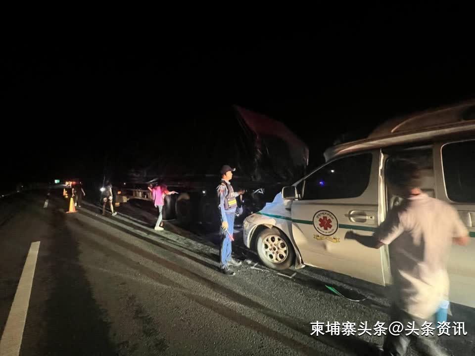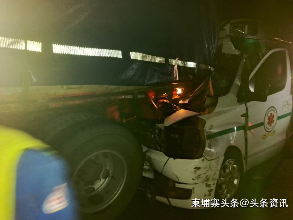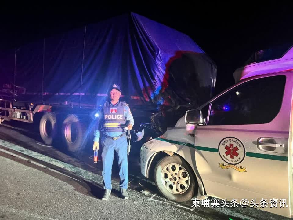 【柬埔寨头条综合报道】据柬媒消息,2025年10月1日晚10时16分,在实居省普农斯罗县高速公路路段,一辆救护车从后方追尾一辆集装箱运输车,造成1人死亡、5人受伤。