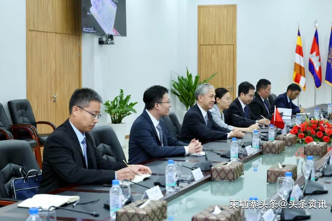 【柬埔寨头条综合报道】据柬媒消息,2025年9月30日下午,柬埔寨公共工程与运输部部长宾波尼会见了中国驻柬埔寨大使汪文斌及来自中国的中水北方勘测设计研究有限公司(China Water Resources Beifang Investigation Design & Research Co., Ltd.)代表。双方就德崇扶南运河项目中的多功能水资源管理基础设施建设进行了工作会谈。公共工程与运输部相关领导和技术官员也参加了会见。